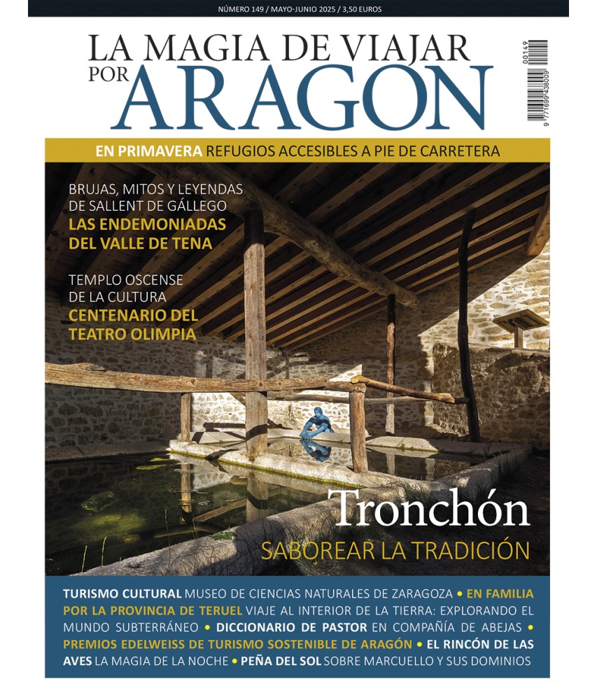 Contenidos del nº 149 /mayo - junio 2025: Noticias / Patrimonio etnográfico: De Tronchón, un destino para saborear la tradición: la frontera desconocida / PR-HU 157 Sendero del Santo Grial: De Bailo al monasterio nuevo de San Juan de la Peña / Turismo cultural: Museo de Ciencias Naturales de la Universidad de Zaragoza / Feria de brujas, mitos y leyendas de Sallent de Gállego: Las endemoniadas del valle de Tena / En primavera…Refugios accesibles a pie de carretera / En familia por la provincia de Teruel: Viaje al interior de la tierra: explorando el mundo subterráneo / Diccionario de pastor: En compañía de abejas / Premios Edelweiss de turismo sostenible de Aragón / El rincón de las aves: La magia de la noche / Experimenta Aragón: Centenario del Teatro Olimpia / Peña del sol: Sobre Marcuello y sus dominios / Novedades editoriales